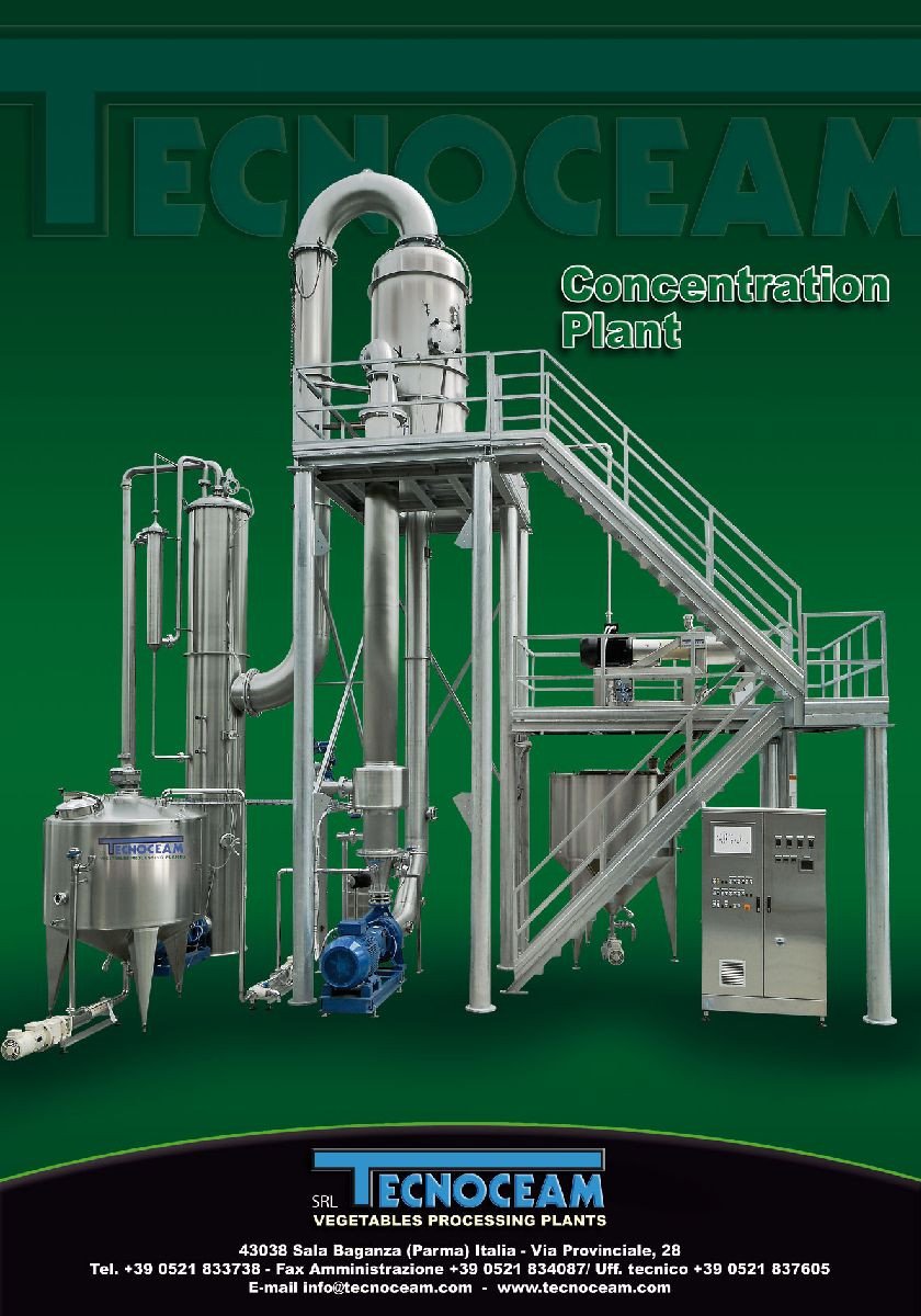 The concentrators are equipped with a refractometer to continuously control the tomato concentration and the product unloading, a product level monitoring system within each stage, direct steam supply and condensate drains.