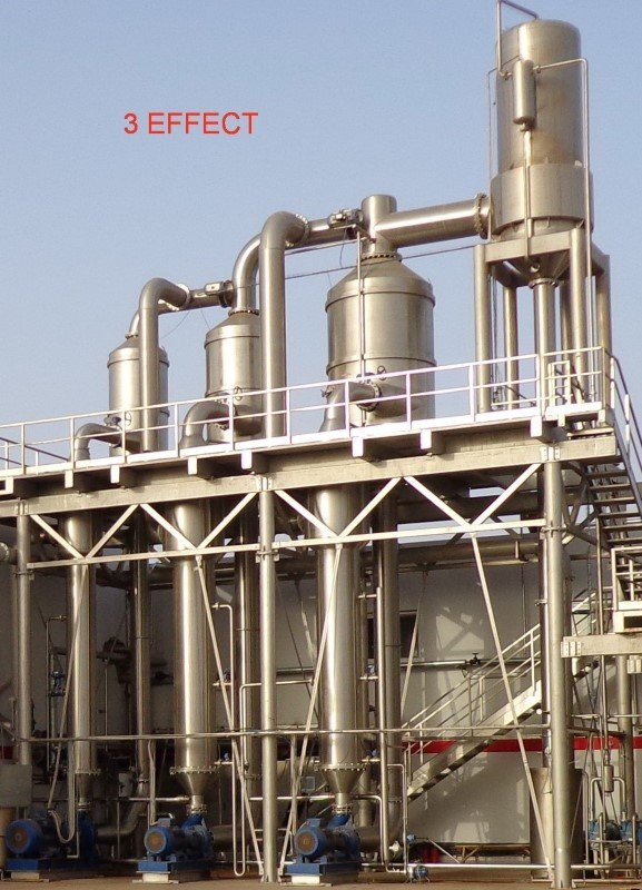 In the single action version, the evaporated product is sent directly to the condenser, while in the multiple action versions, it is reused to evaporate more product in the following stage.