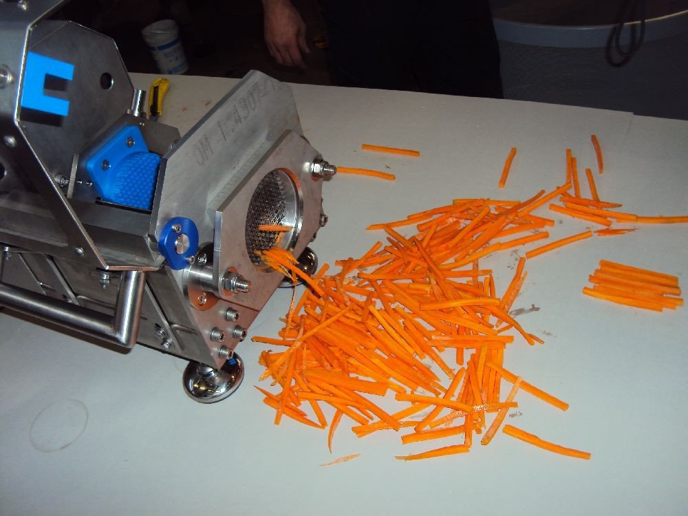 Cutting system by means of a pneumatic cylinder that pushes the vegetable against a cutting grid (modifiable according to the user’s needs …. 6×6 mm, 10×10 mm, …)