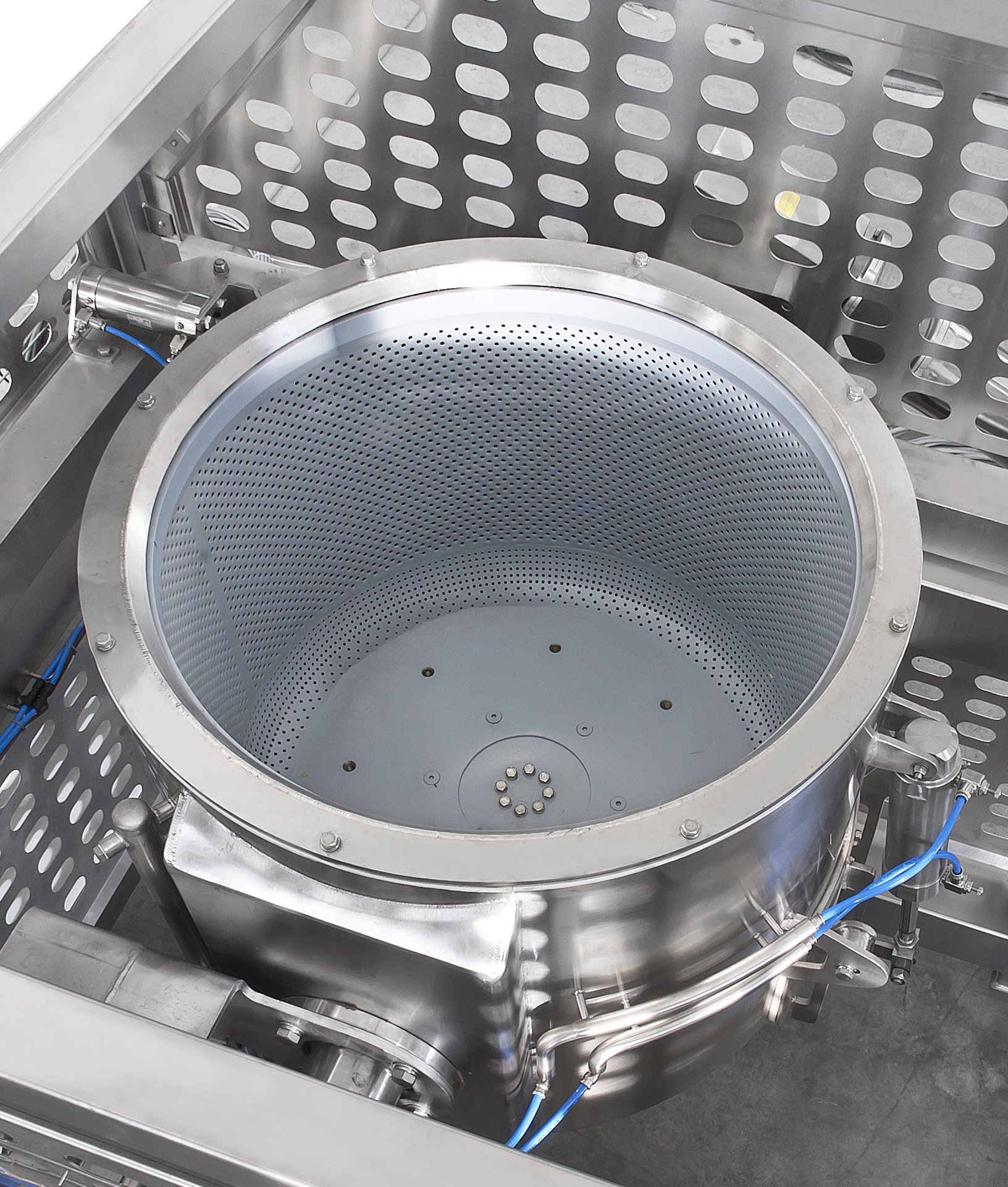 • completa automatizzazione del ciclo di lavorazione con gestione automatica, da pannello di controllo, dei parametri di lavorazione, tra cui l’intensità e la durata della centrifugazione in base alle caratteristiche del prodotto e al volume d’acqua da sgrondare;