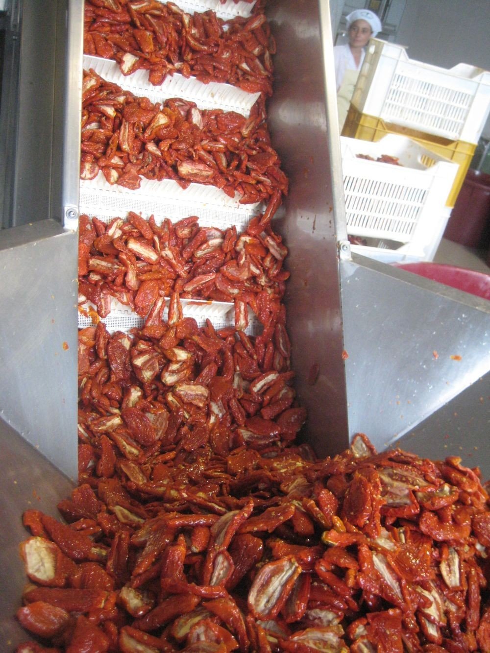 Macchina idonea per asciugare / sgrondare, mediante forza centrifuga, prodotti freschi della IV gamma (vegetali in foglia tipo spinaci, insalate, basilico), prodotti destinati alla conservazione (olive, carciofini, funghi, ecc.) o alla surgelazione.