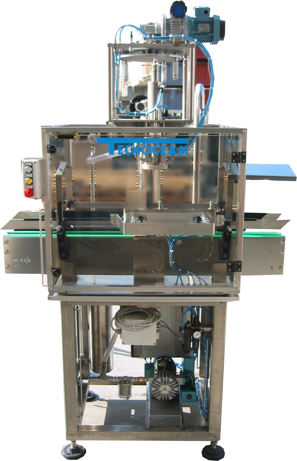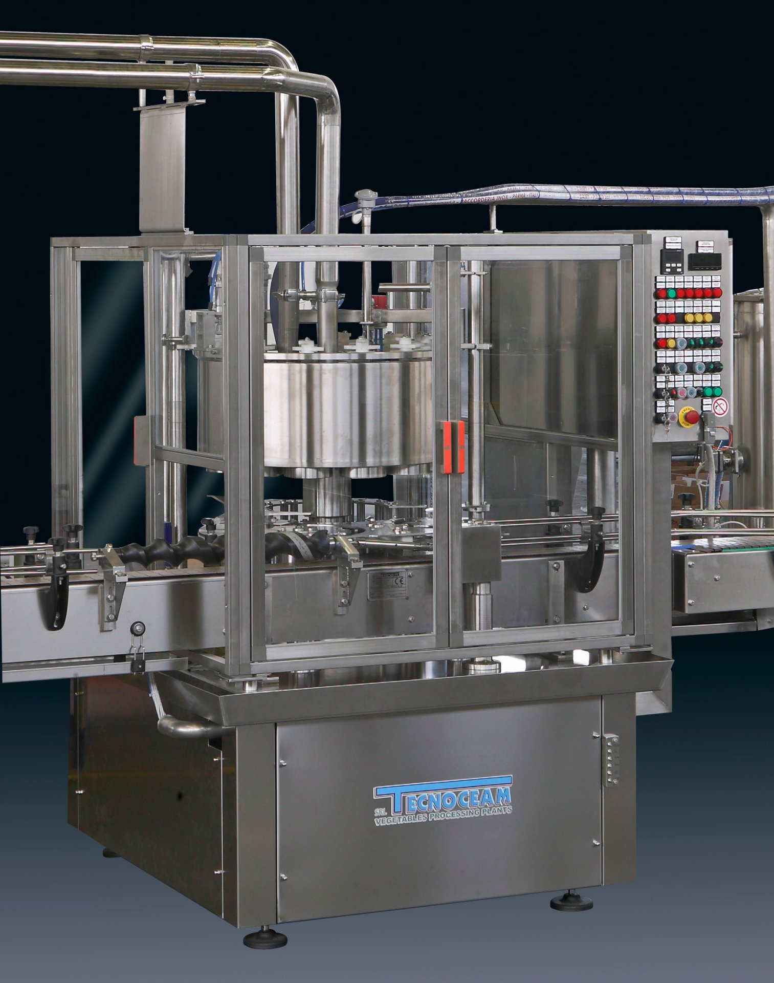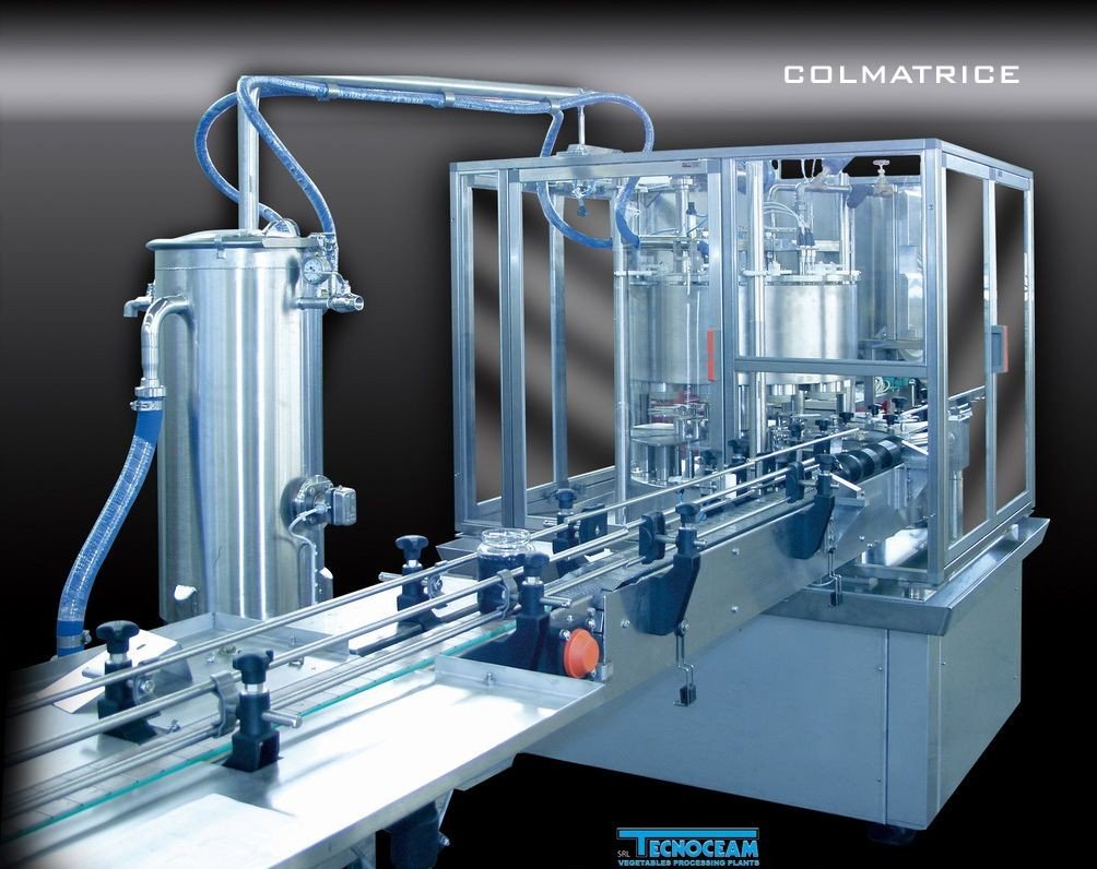 Macchina idonea a riempire sottovuoto recipienti in vetro o metallo – contenenti vegetali o frutta – con liquidi di governo tipo olio, aceto, salamoia, sciroppo. La macchina si presta anche a riempire salsa, passata, polpa di pomodoro e sughi contenenti piccoli pezzi di vegetali cotti.