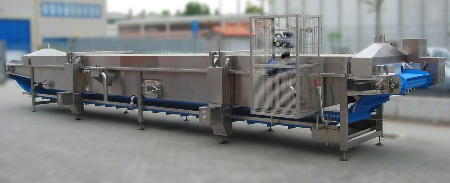 • possibilità di regolare, da pannello operatore, le impostazioni di cottura: temperatura dell’acqua, velocità di avanzamento del nastro trasportatore, quindi, anche il tempo di permanenza del prodotto nella vasca e, di conseguenza, il tempo di cottura;