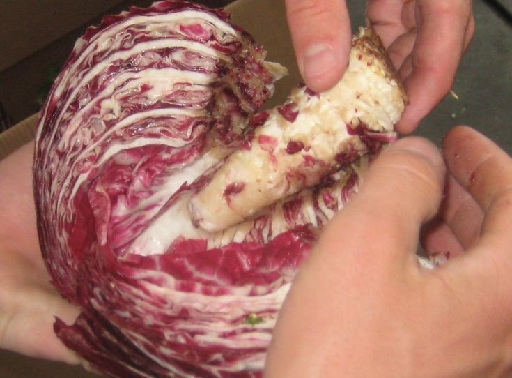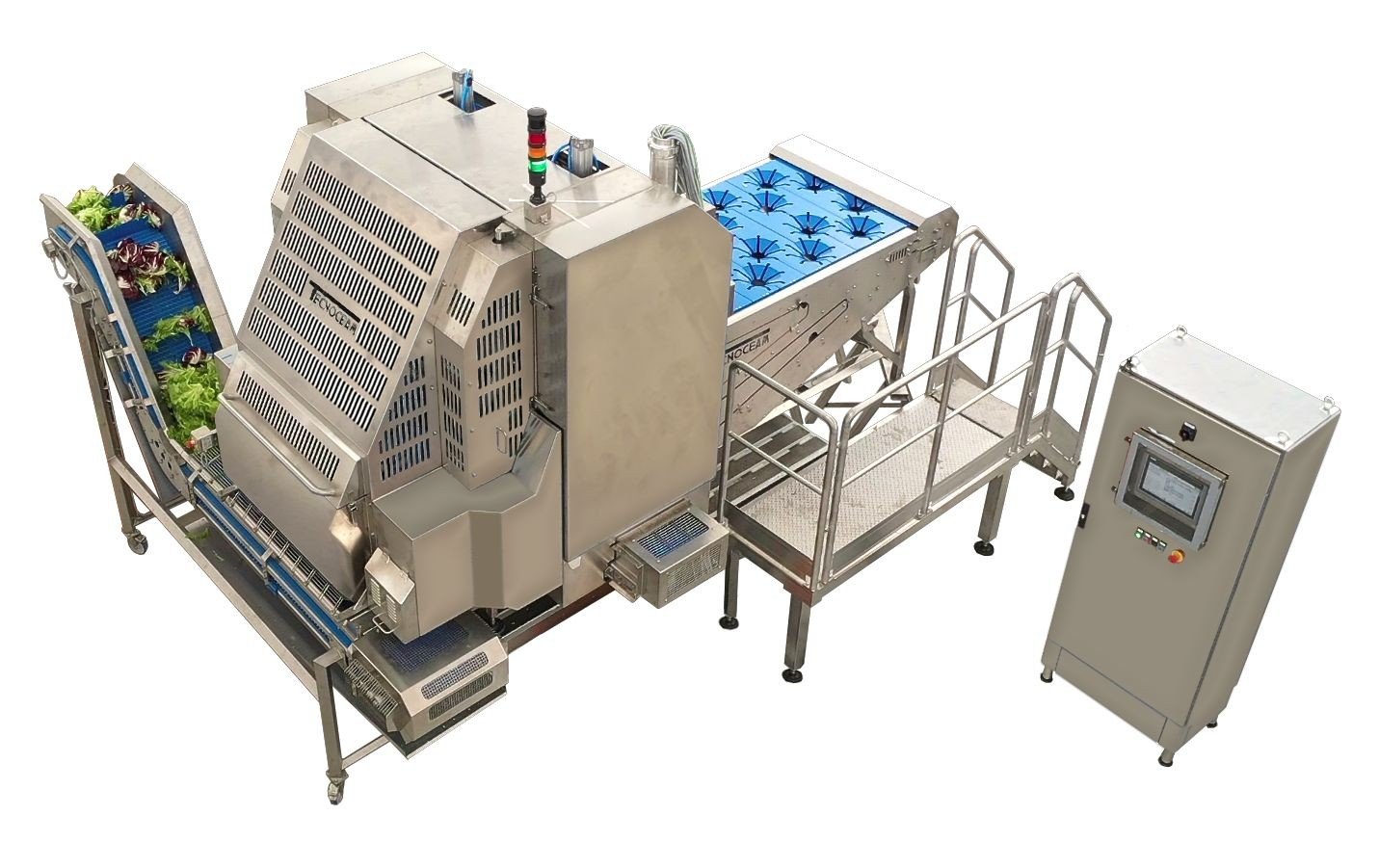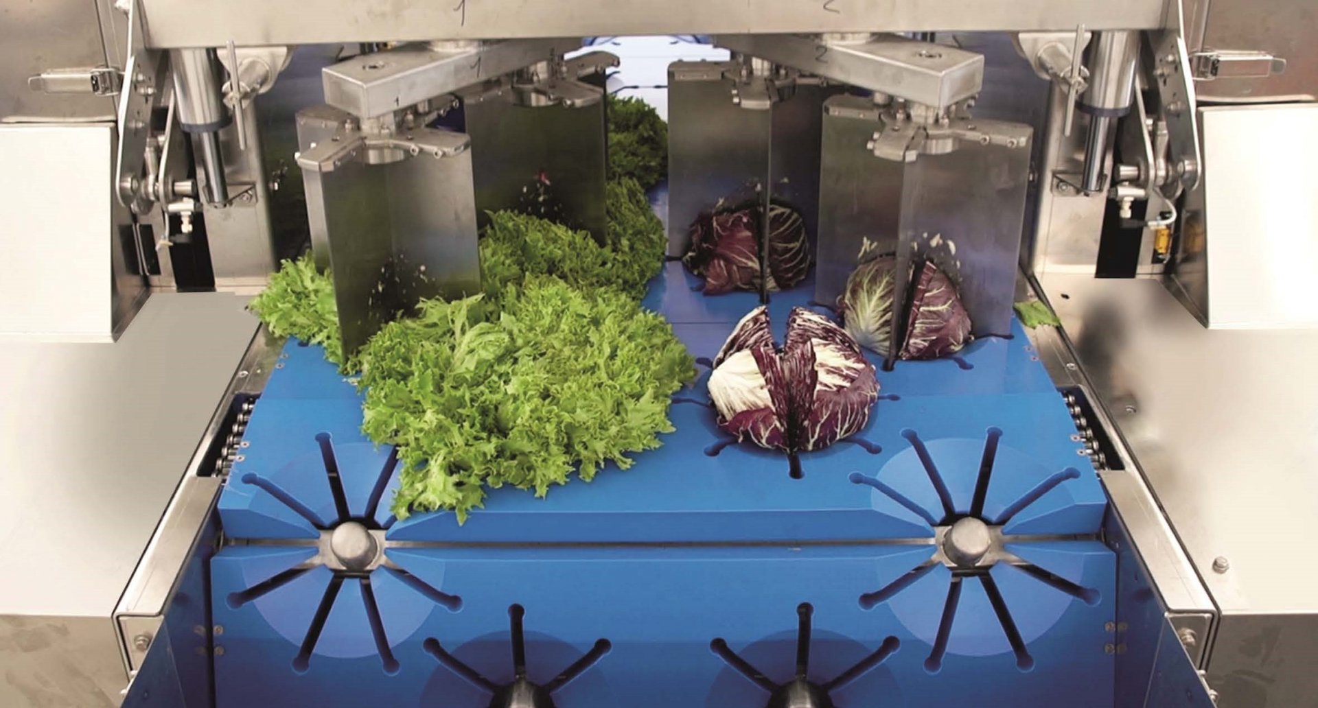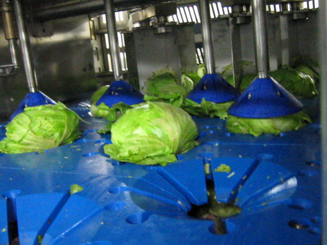 Macchina idonea ad asportare i torsoli di prodotti vegetali freschi (insalate in cespo tipo iceberg e radicchio chioggia, cavolo cappuccio, cavolo) e ad effettuare il successivo taglio in spicchi del prodotto detorsolato.