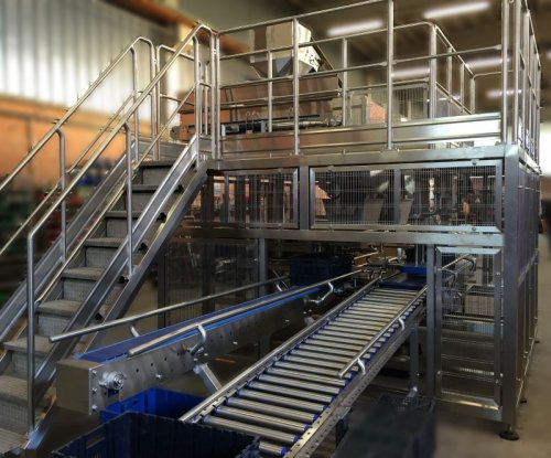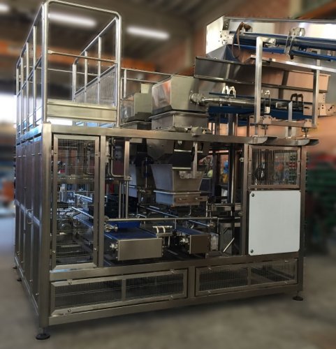 L’impianto è completamente automatico e l’operatore carica le casse vuote e riceve le casse riempite dalla stessa parte.
