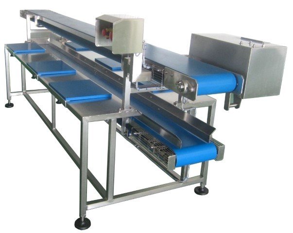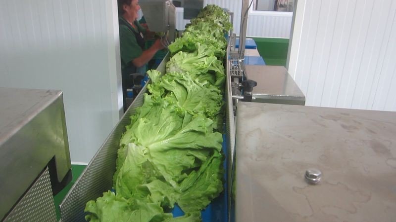 Nastro trasportatore a 2 nastri idoneo alla monda di prodotti vegetali di diverso tipo e dimensione.