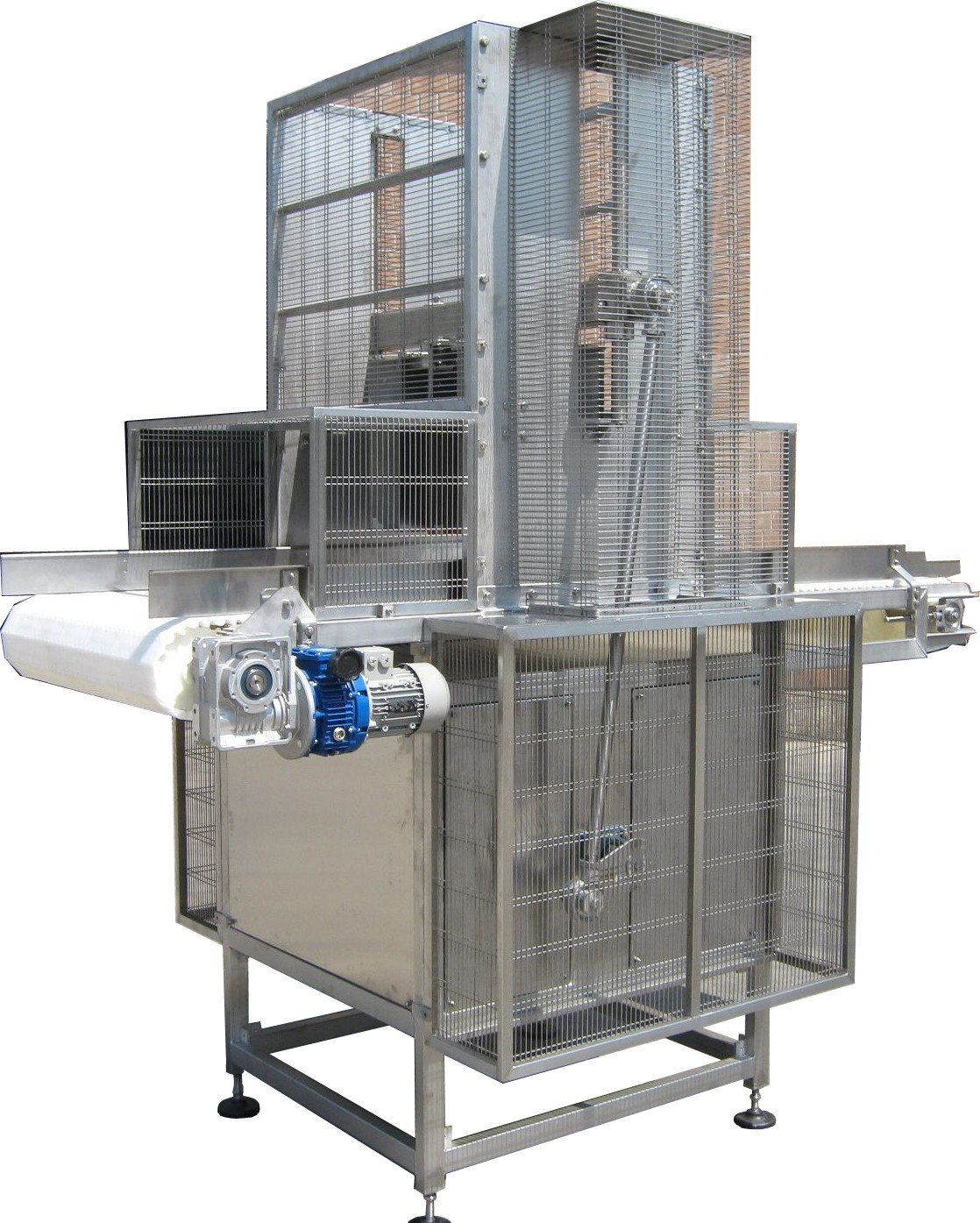 Un coltello verticale alternativo taglia i vegetali in pezzi destinati alla produzione di purea.