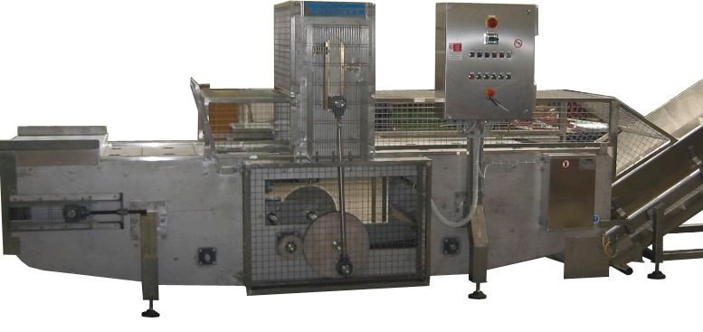 Una Catena motorizzata passo a passo porta il prodotto nella zona di taglio.
