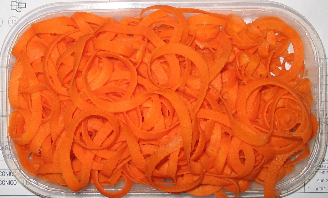 Macchina idonea ad effettuare il taglio di ortaggi tipo carote, zucchine, rape, daikon, ecc. in strisce a spirale, “tagliatelle” o “spaghetti” da consumare come crudità e in mix di insalate pronte.