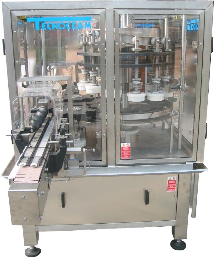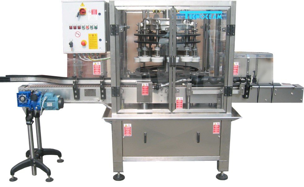 Macchina idonea a pressare prodotti alimentari riempiti all’interno di contenitori di materiale diverso (vetro, banda stagnata, ecc.).