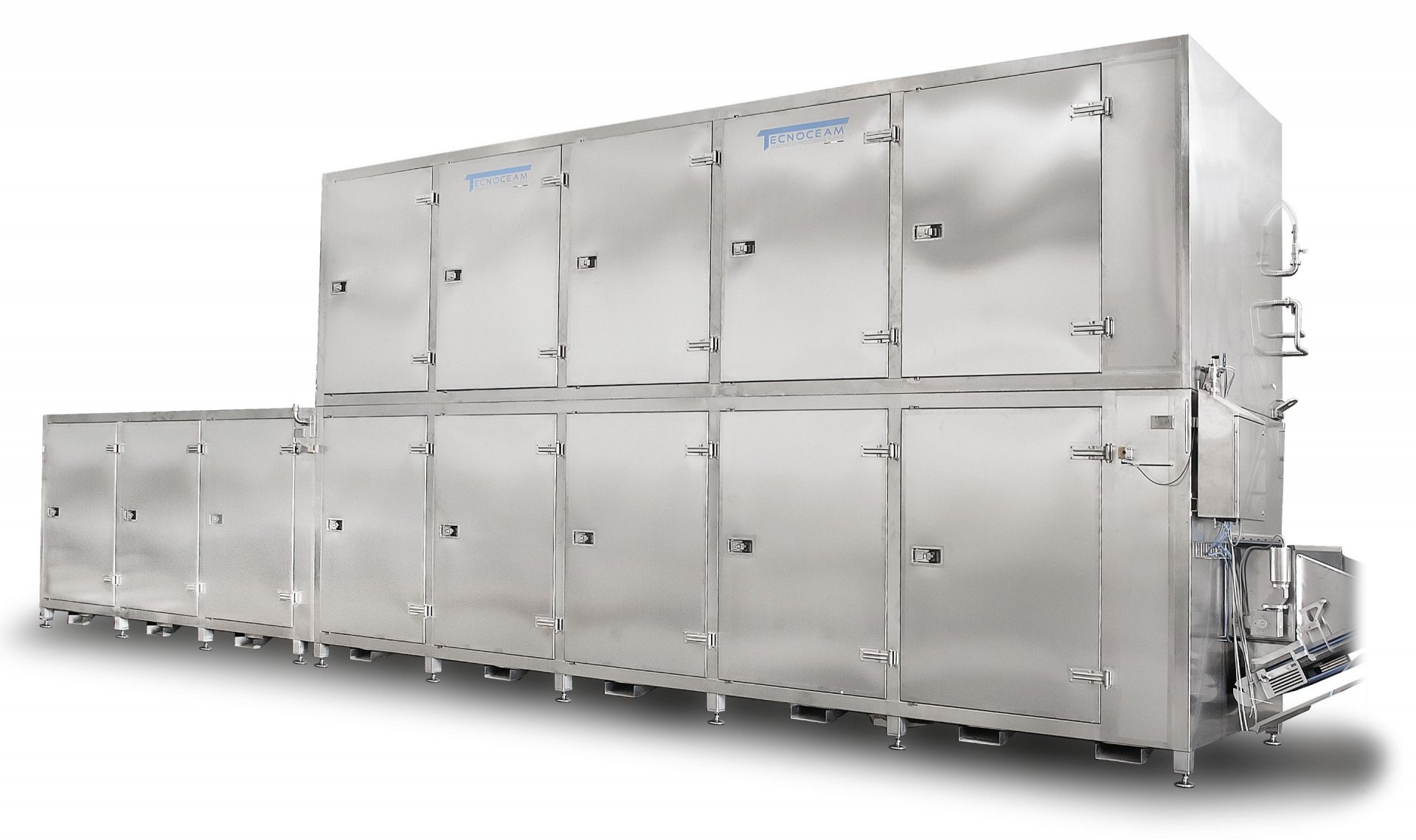 • possibilità di impostare automaticamente, tramite pannello operatore dotato di PLC e touch screen, un’ampia gamma di ricette di lavorazione, variando i valori di velocità delle unità operative, le temperature dei flussi d’aria, ecc. secondo il prodotto da trattare e la produzione richiesta;